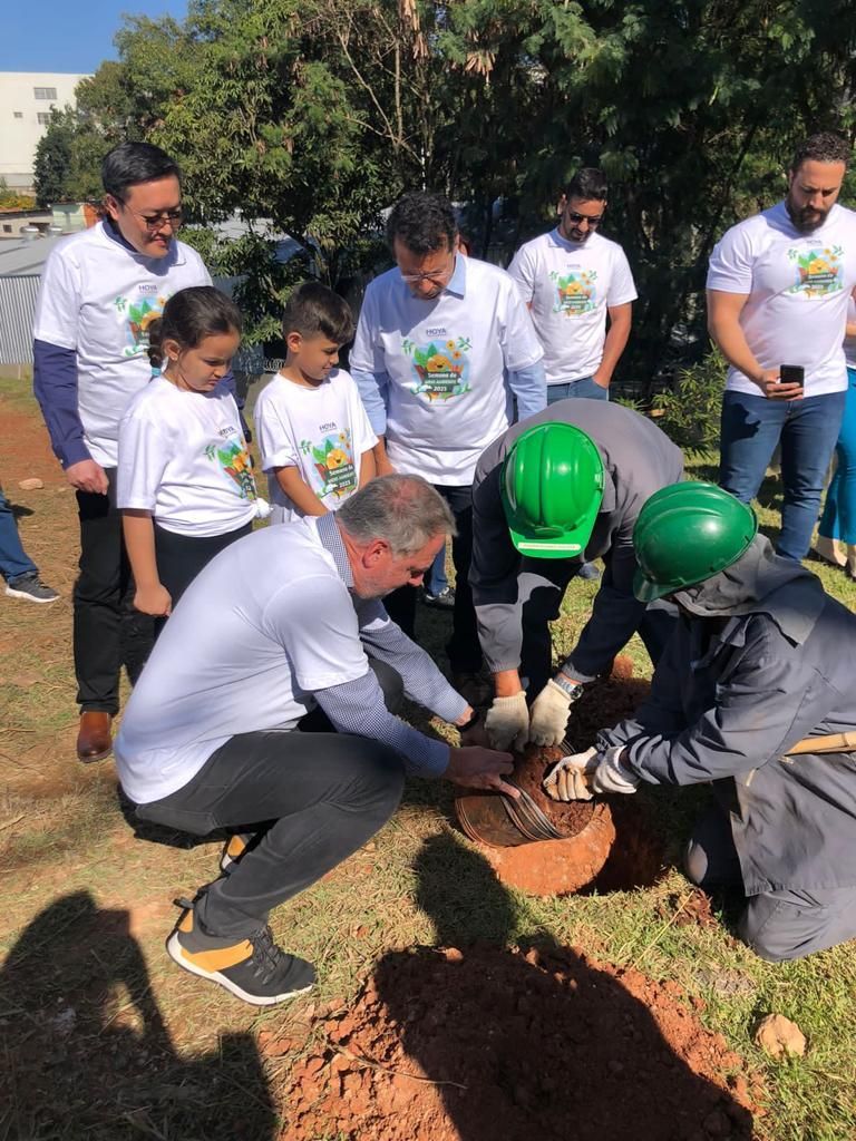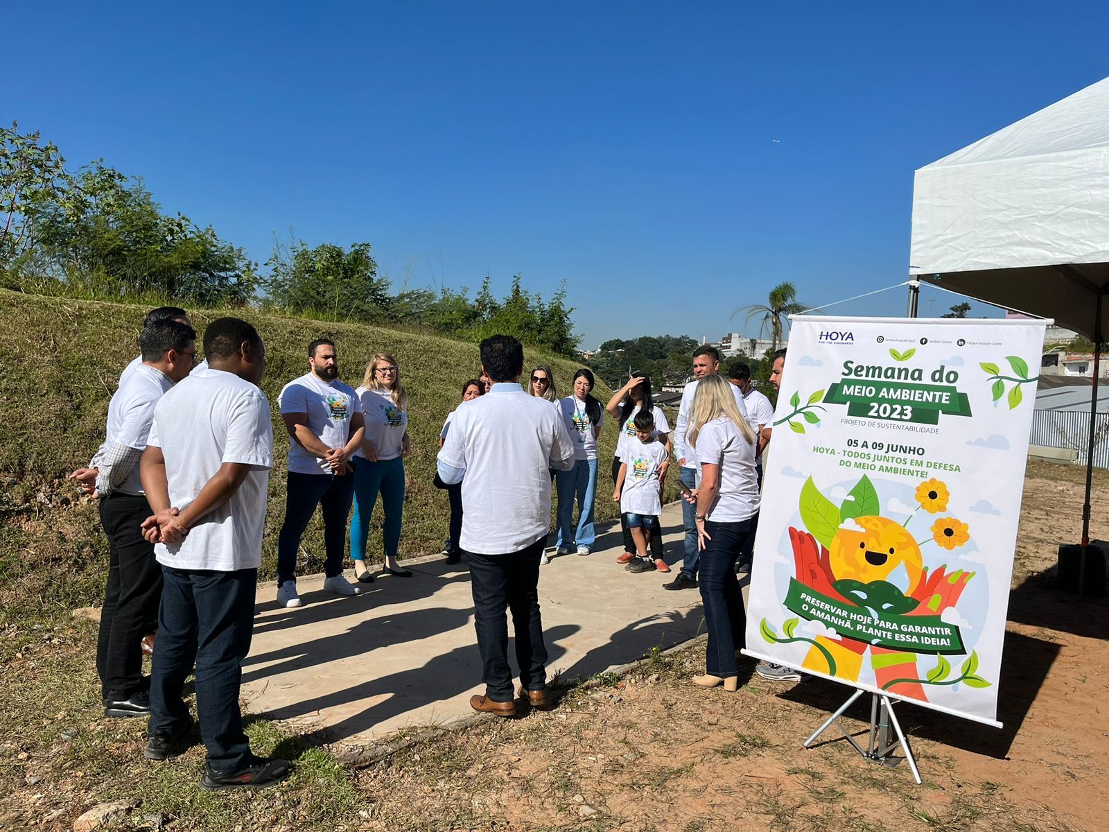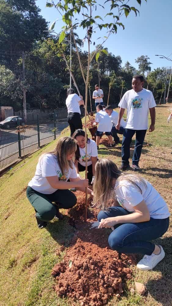 Colaboradores da Flora Calegare auxiliando funcionarios da Hoya no plantio.